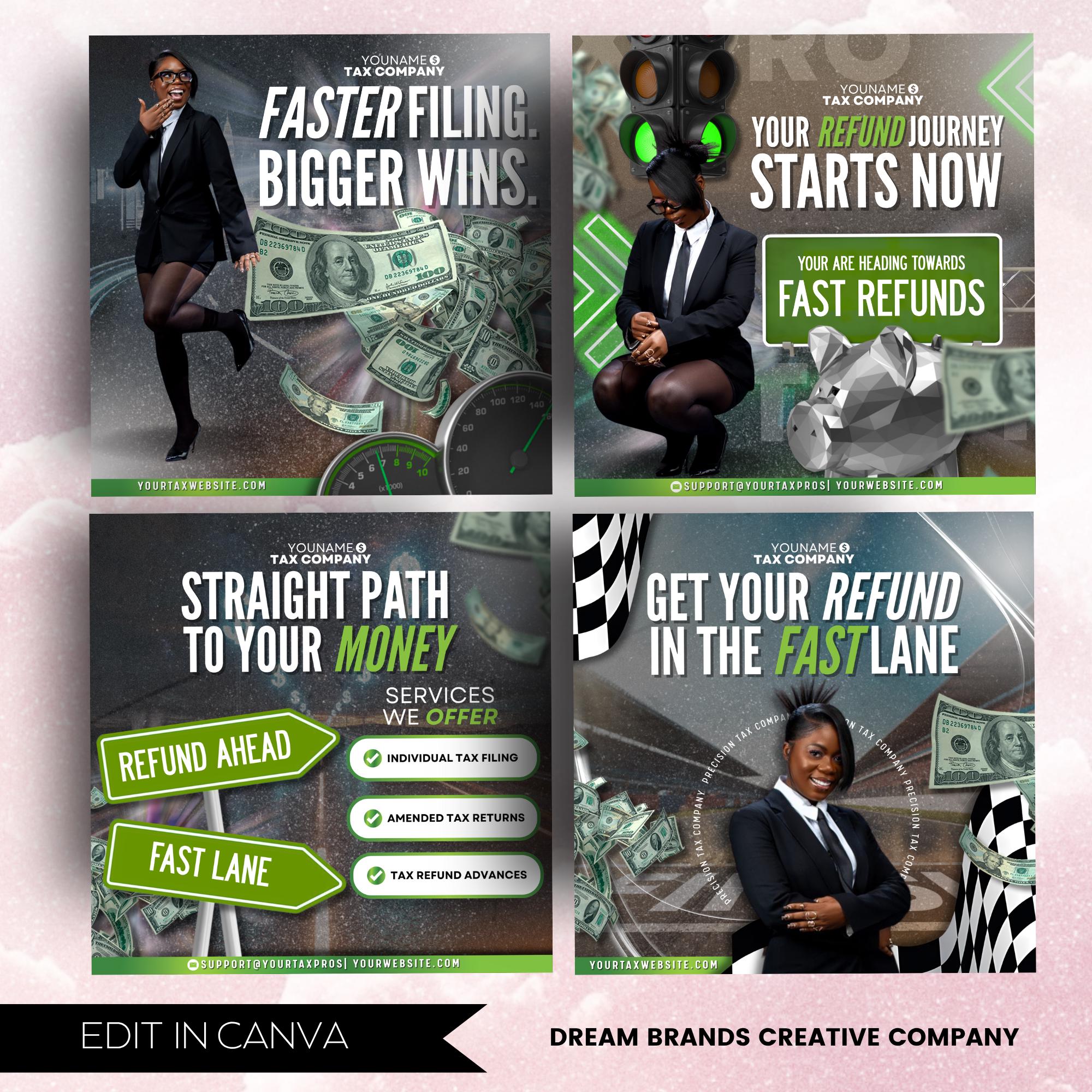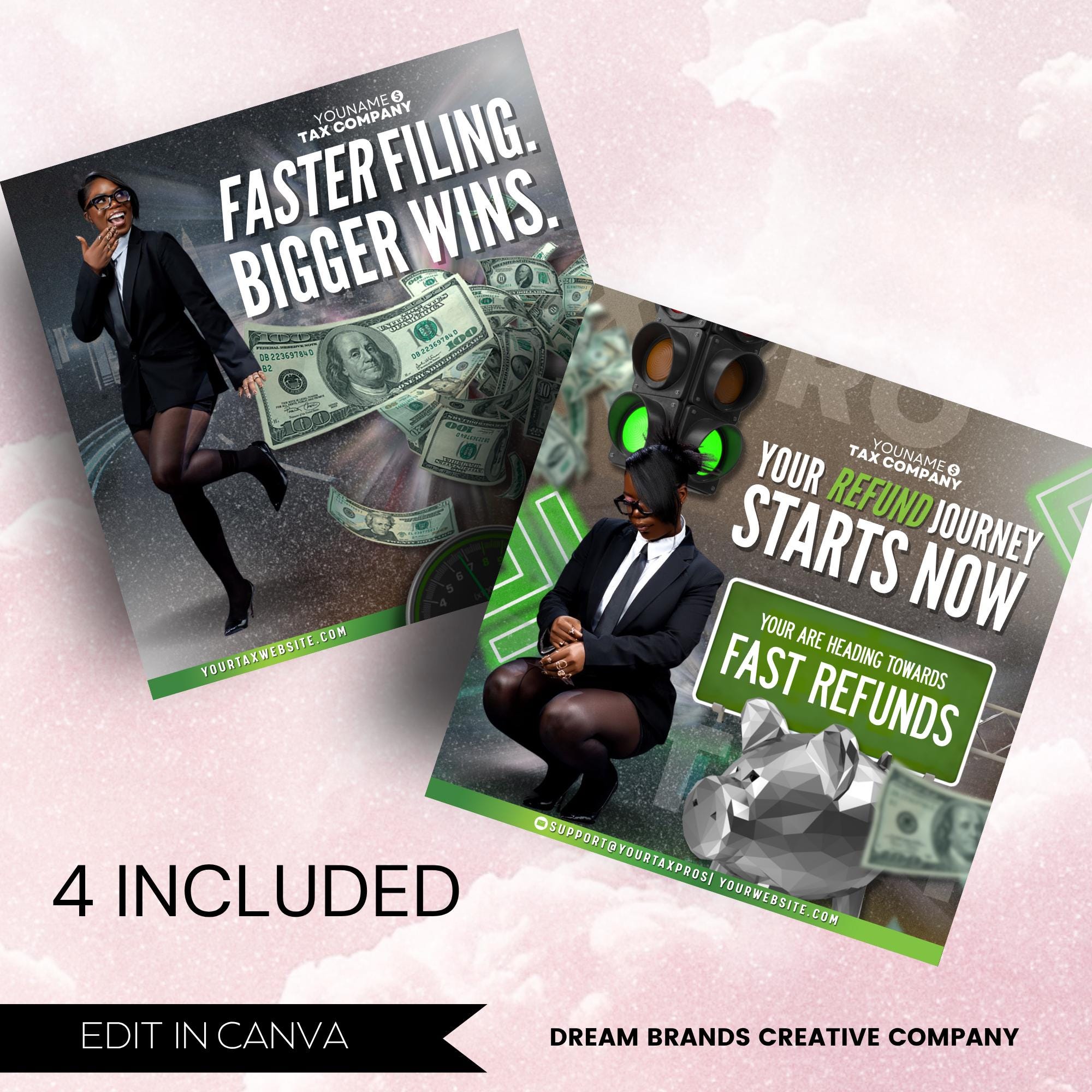4 Fully Editable Tax Prep Service Flyers, 2026 Tax Season Flyers, Income Tax Preparer Flyers, Accounting Services Flyers, Canva Template