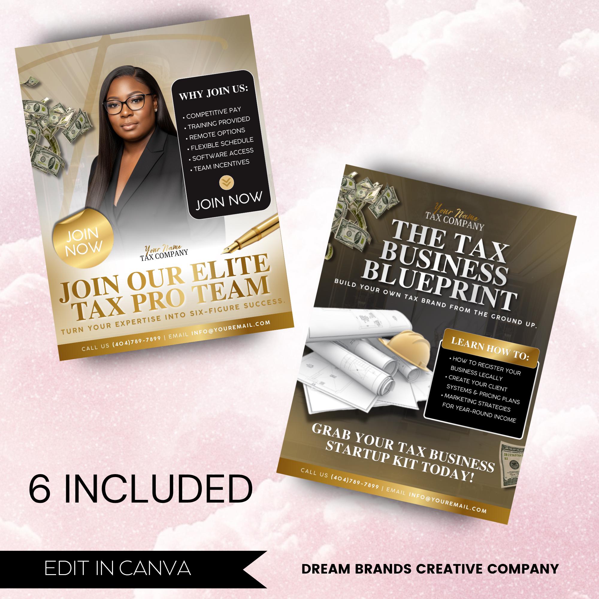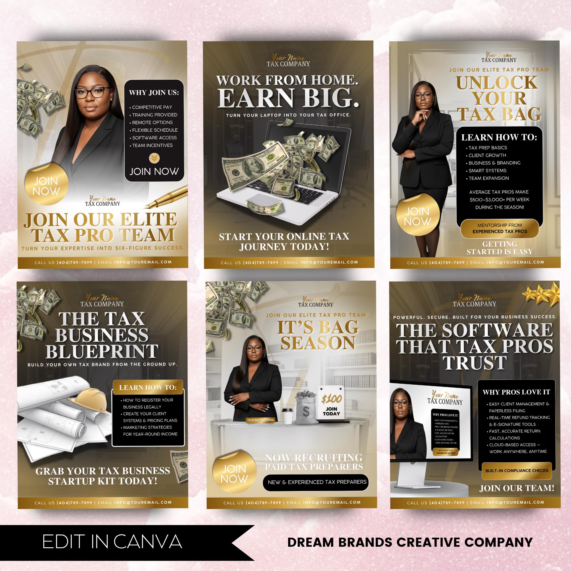 6 Fully Editable Tax Prep Service Flyers, 2026 Tax Season Flyers, Income Tax Preparer Flyers, Accounting Services Flyers, Canva Template