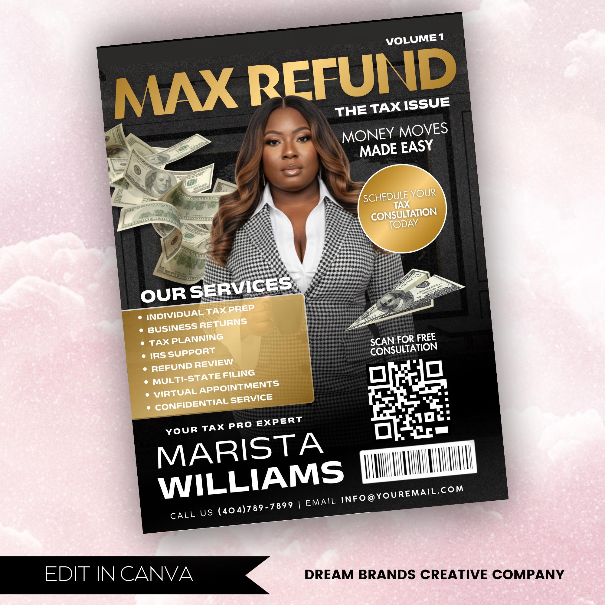 Magazine Flyer For Tax Season, Modern Tax Prep Flyer, Editable Tax Refund Preparation, Accountant Marketing Flyer, Canva Tax Business Flyer