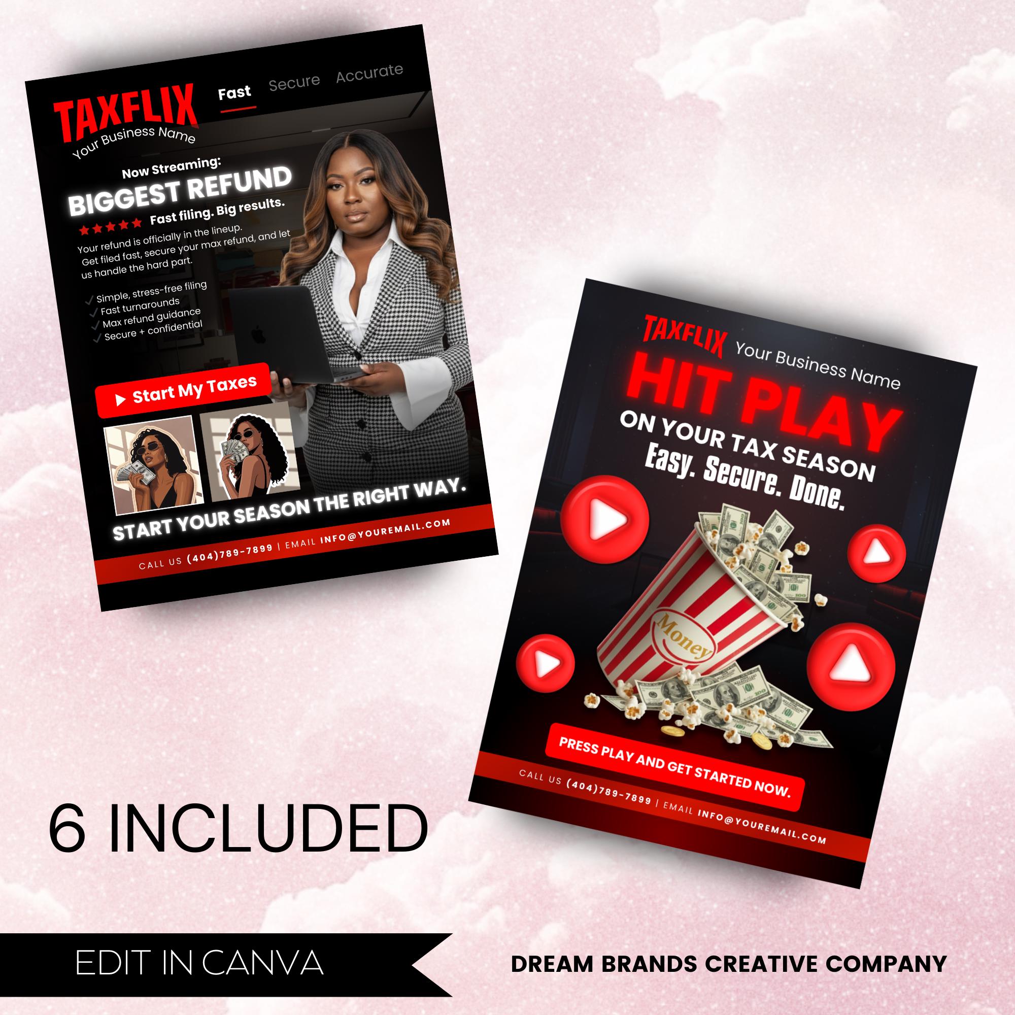 6 Fully Editable Tax Prep Service Flyers, 2026 Tax Season Flyers, Income Tax Preparer Flyers, Accounting Services Flyers, Canva Template