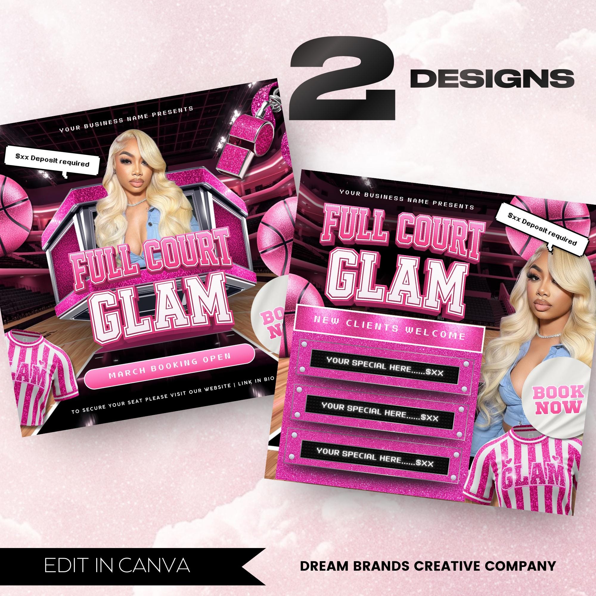 • ❌ The main title text “FULL COURT GLAM” is NOT editable