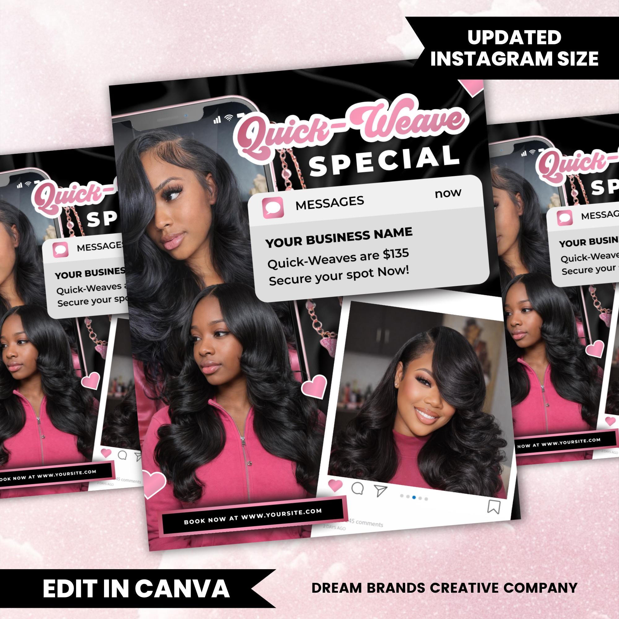 Hair Stylist Quick Weave Flyer Template, Salon Special Flyer, Install Promo Flyer, Lash Hair Beauty Flyer, Canva Editable Design