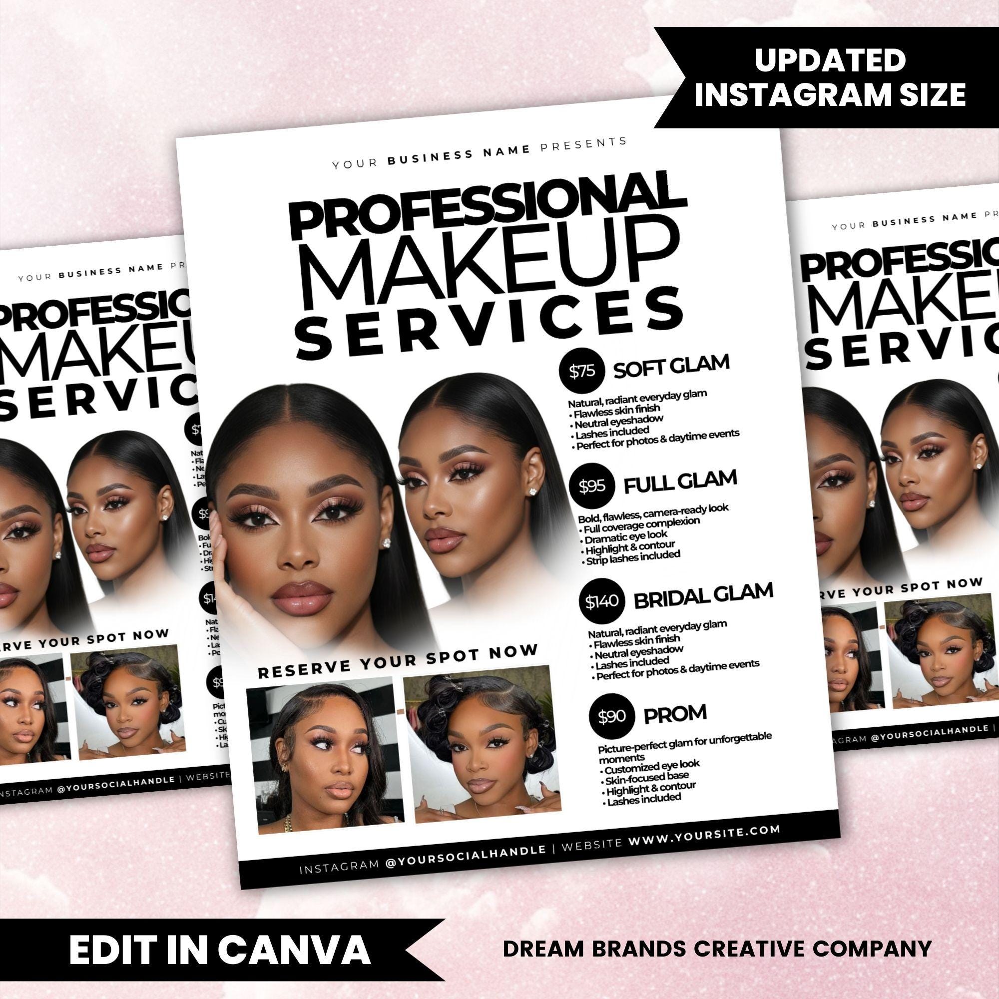 Makeup Price List Flyer Template, MUA Service Menu, Beauty Pricing List, Glam Makeup Artist Price Guide, Editable Canva Template