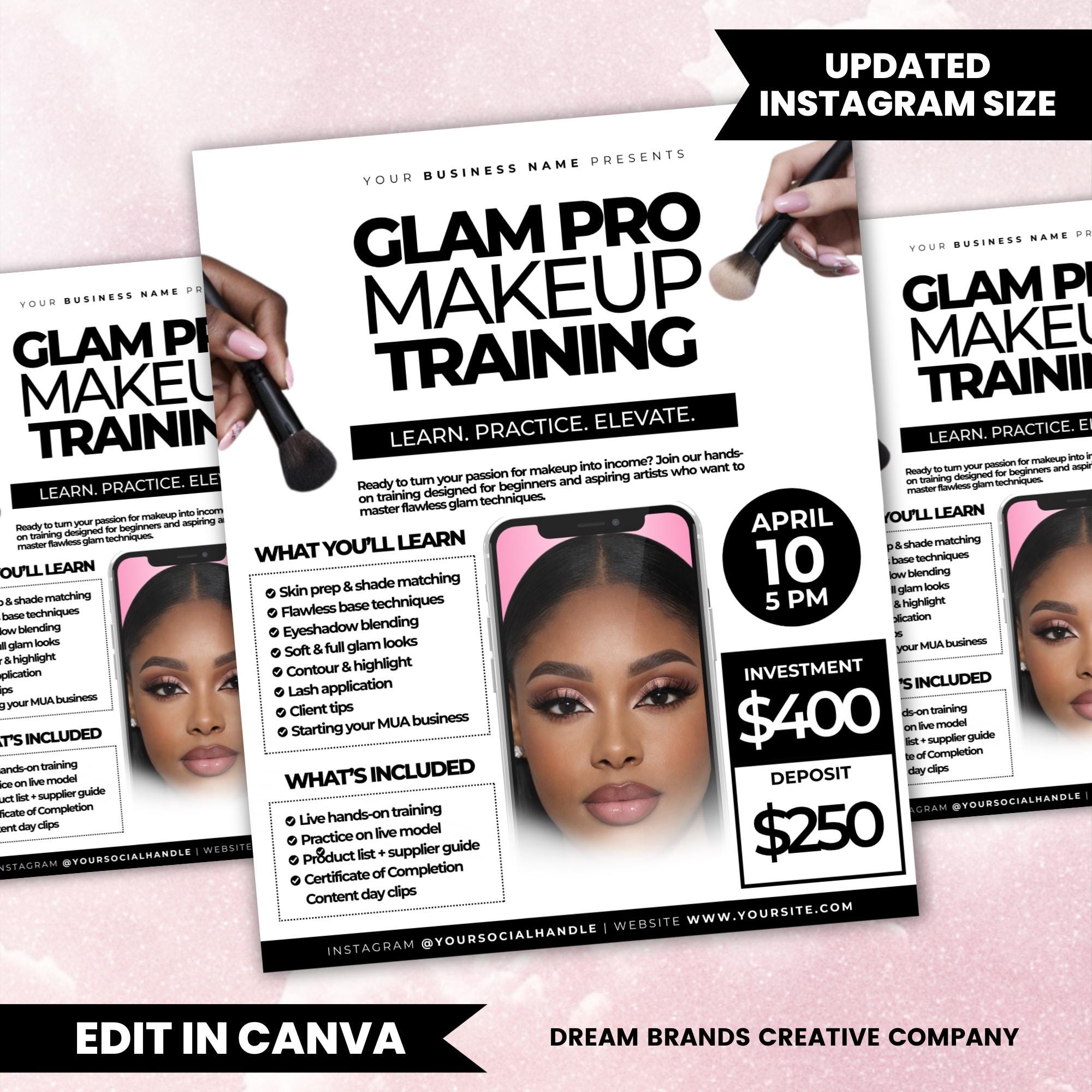 Makeup Training Flyer Template, MUA Class Promo Flyer, Beauty Course Flyer, Makeup Artist Workshop Ad, Editable Canva Template