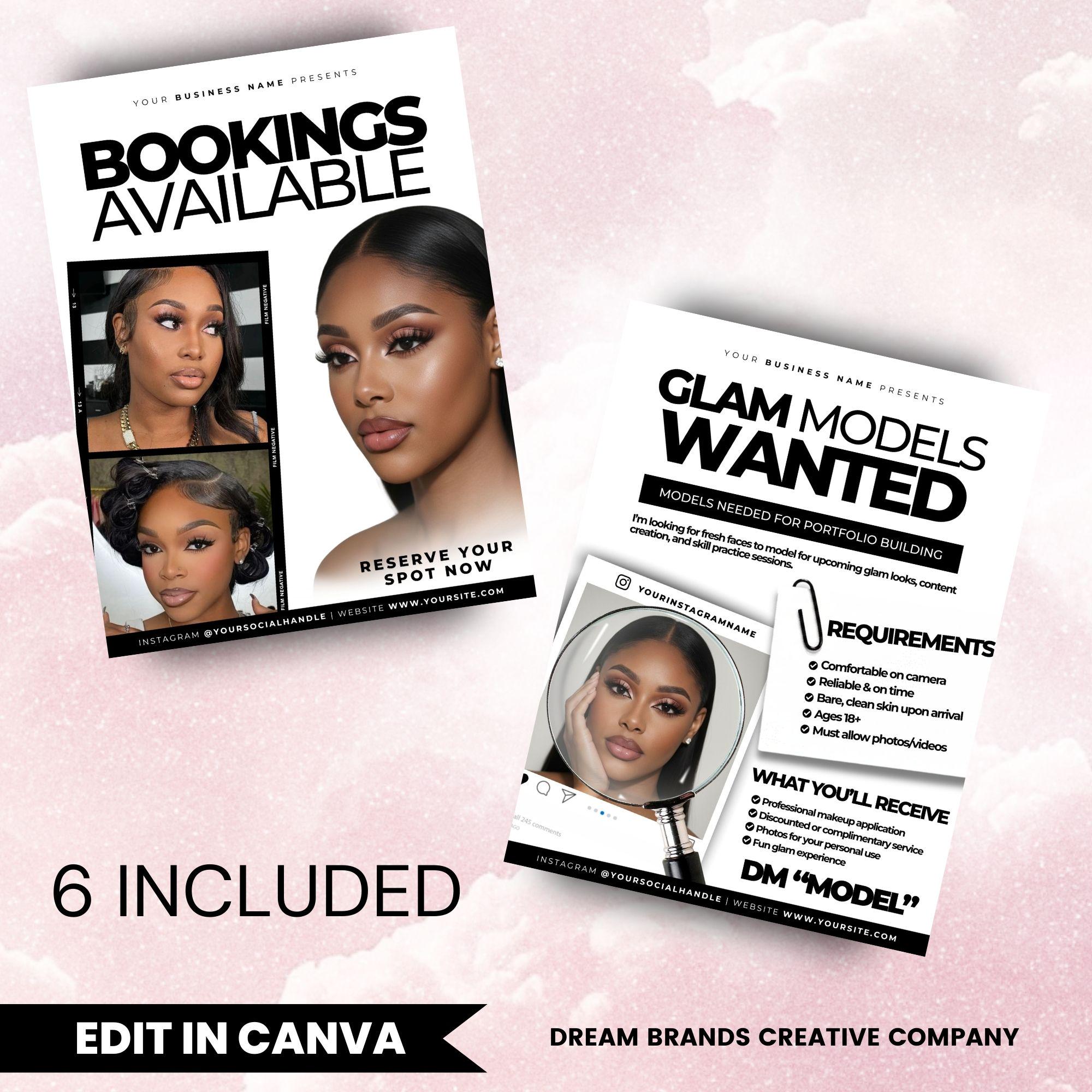 6 Makeup Flyer Templates Bundle, MUA Marketing Kit, Beauty Business Flyers Pack, Makeup Artist Promo Templates, Editable Canva Templates