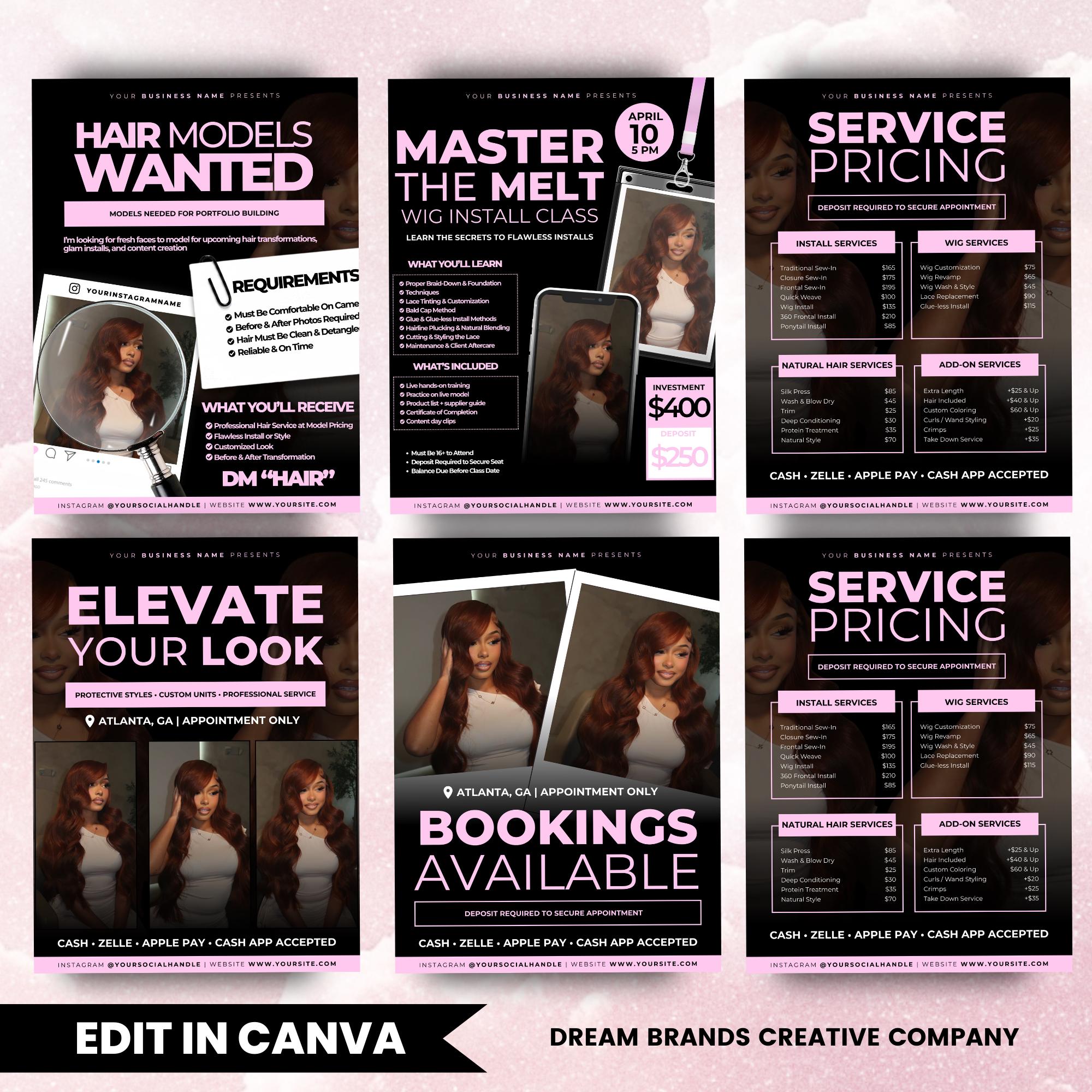 8 Hairstylist Flyer Templates Bundle, Hair Salon Marketing Kit, Beauty Business Promo Flyers Pack, Editable Canva Hair Ads Set