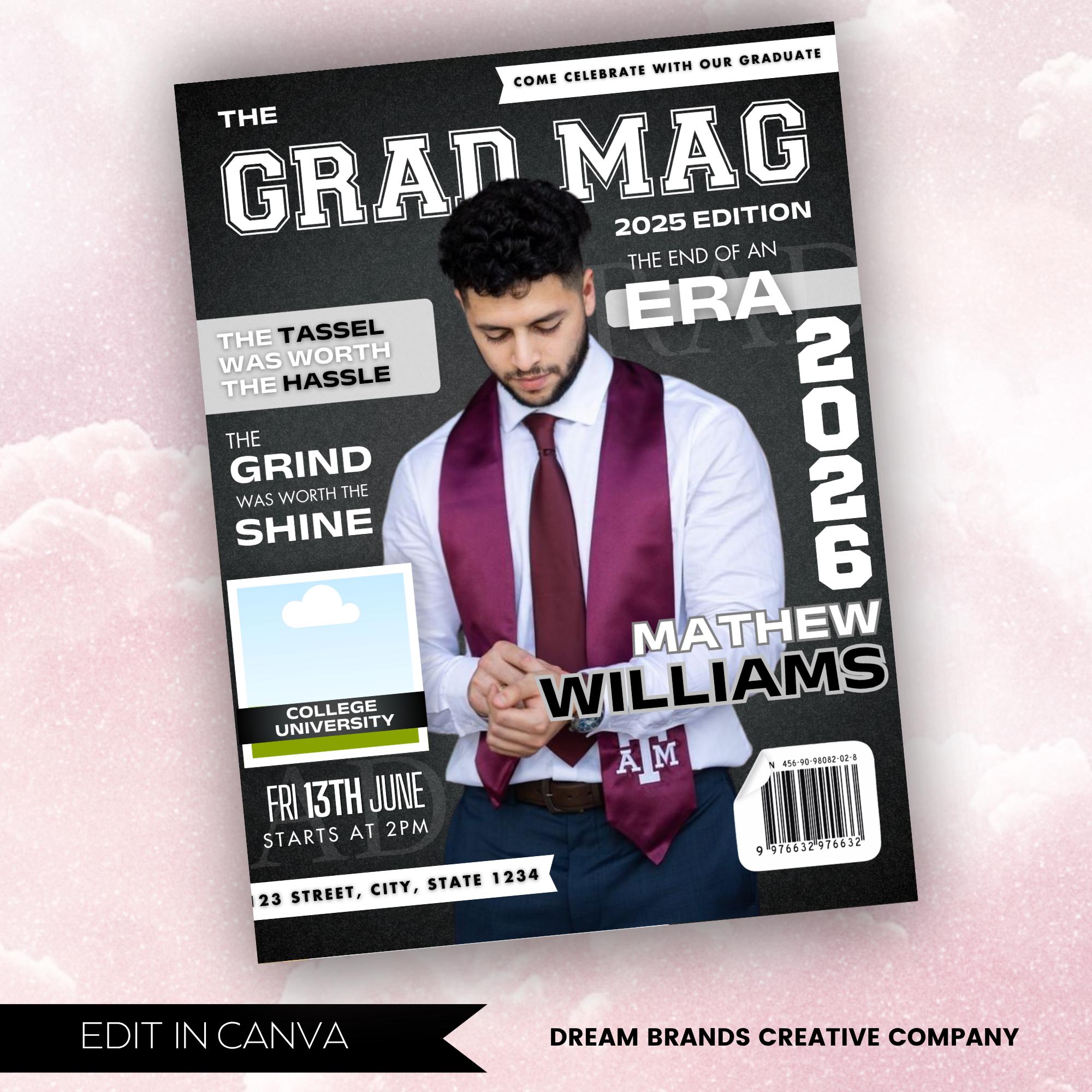 Magazine Cover Graduation Invite, DIY Flyer Template Design, Graduation Event, Class of 2026 Graduates, Premade Graduation Celebration Flyer