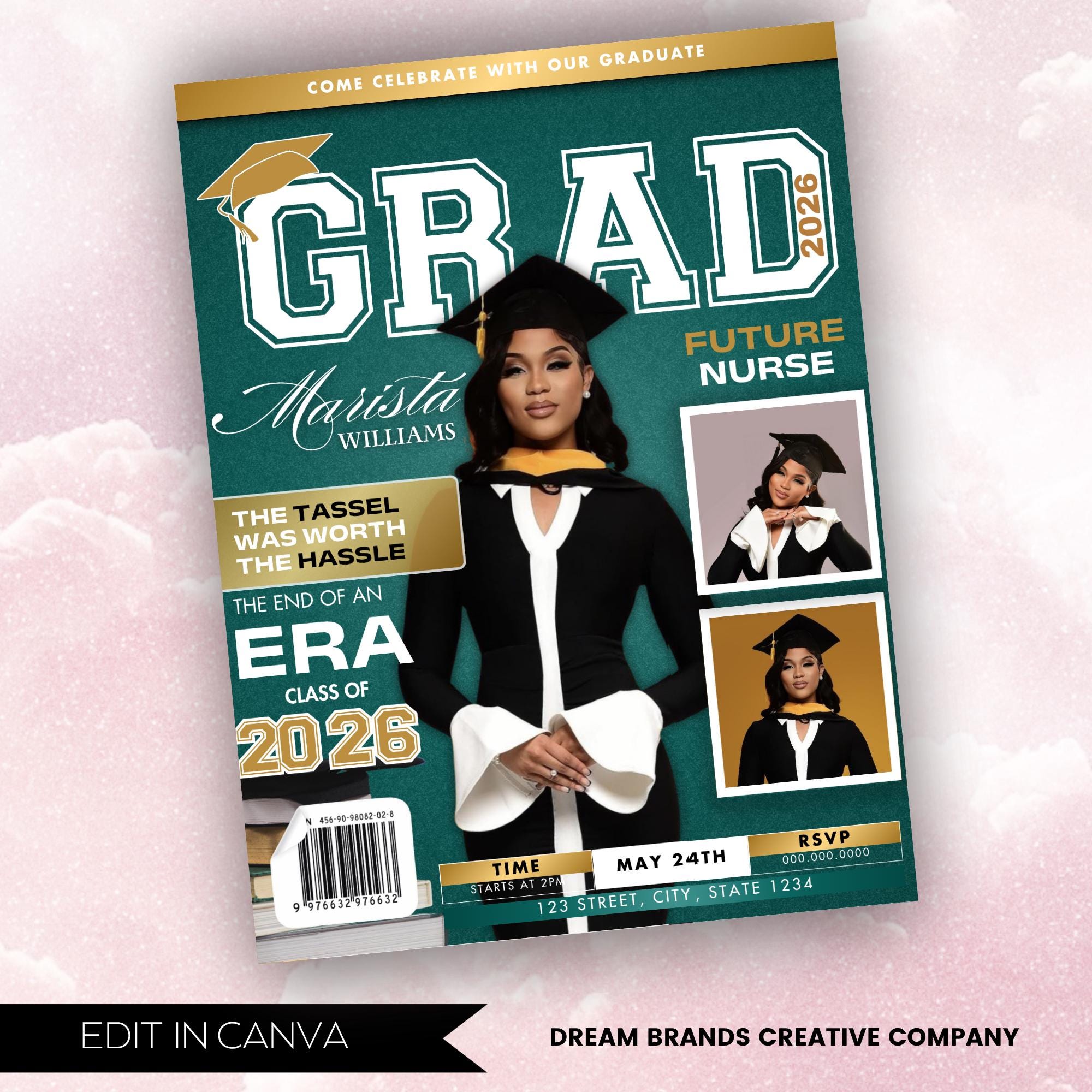 Magazine Cover Graduation Invite, DIY Flyer Template Design, Graduation Event, Class of 2026 Graduates, Premade Graduation Celebration Flyer